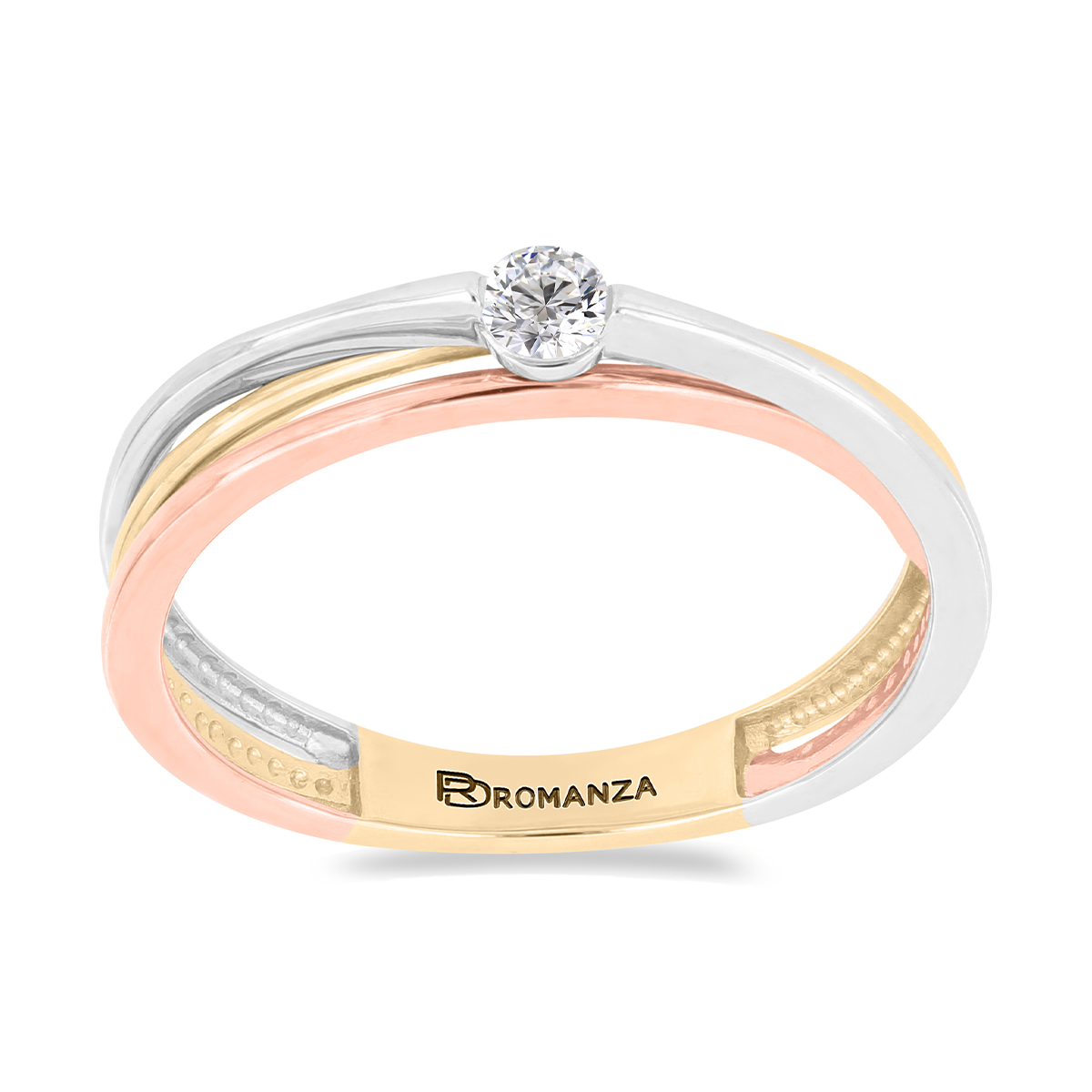 Anillo Solitario con Centro 0.10 Quilates de Diamante en Oro Combinado de 14 kt