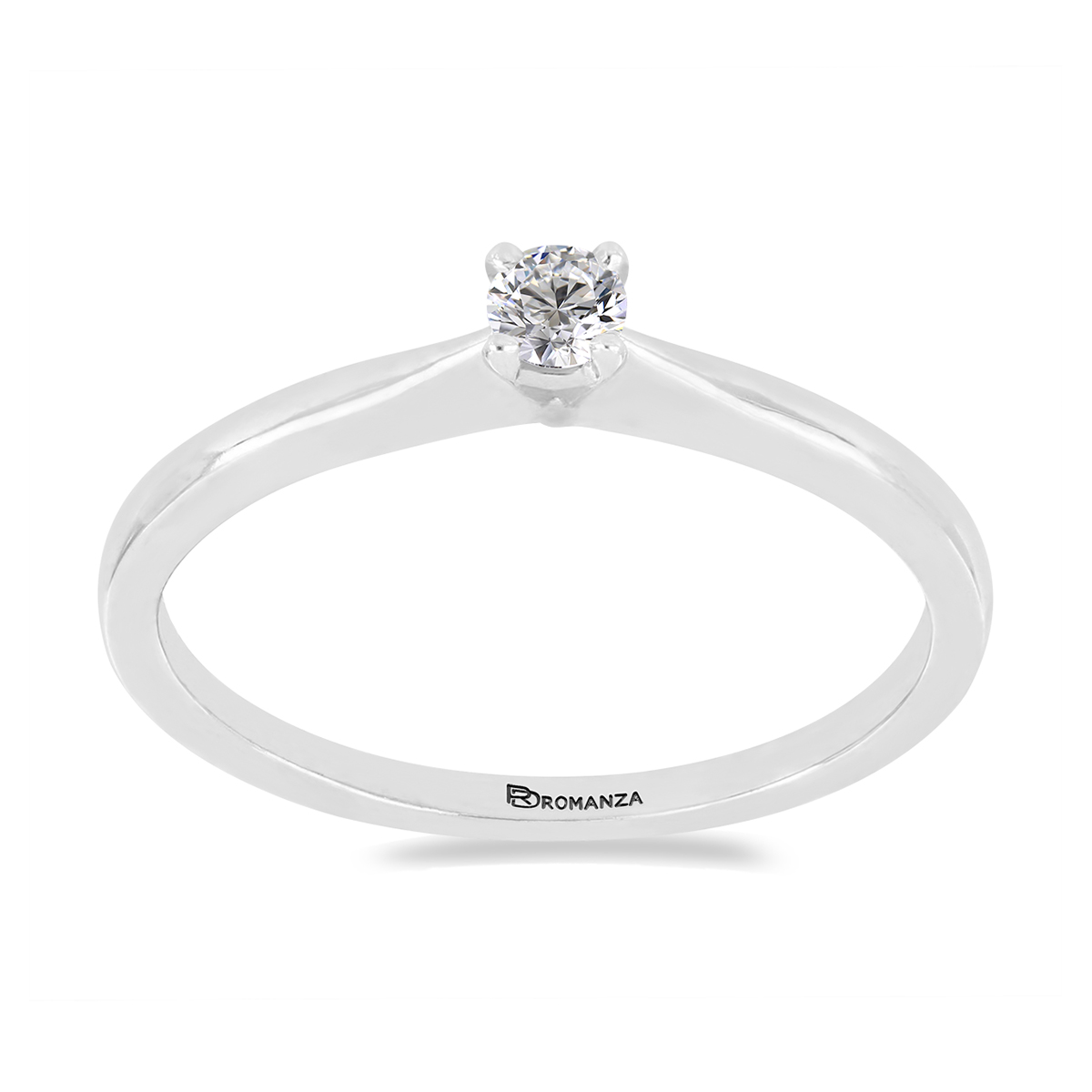 Anillo Solitario con Centro 0.12 Quilates de Diamante en Oro Blanco de 14 kt