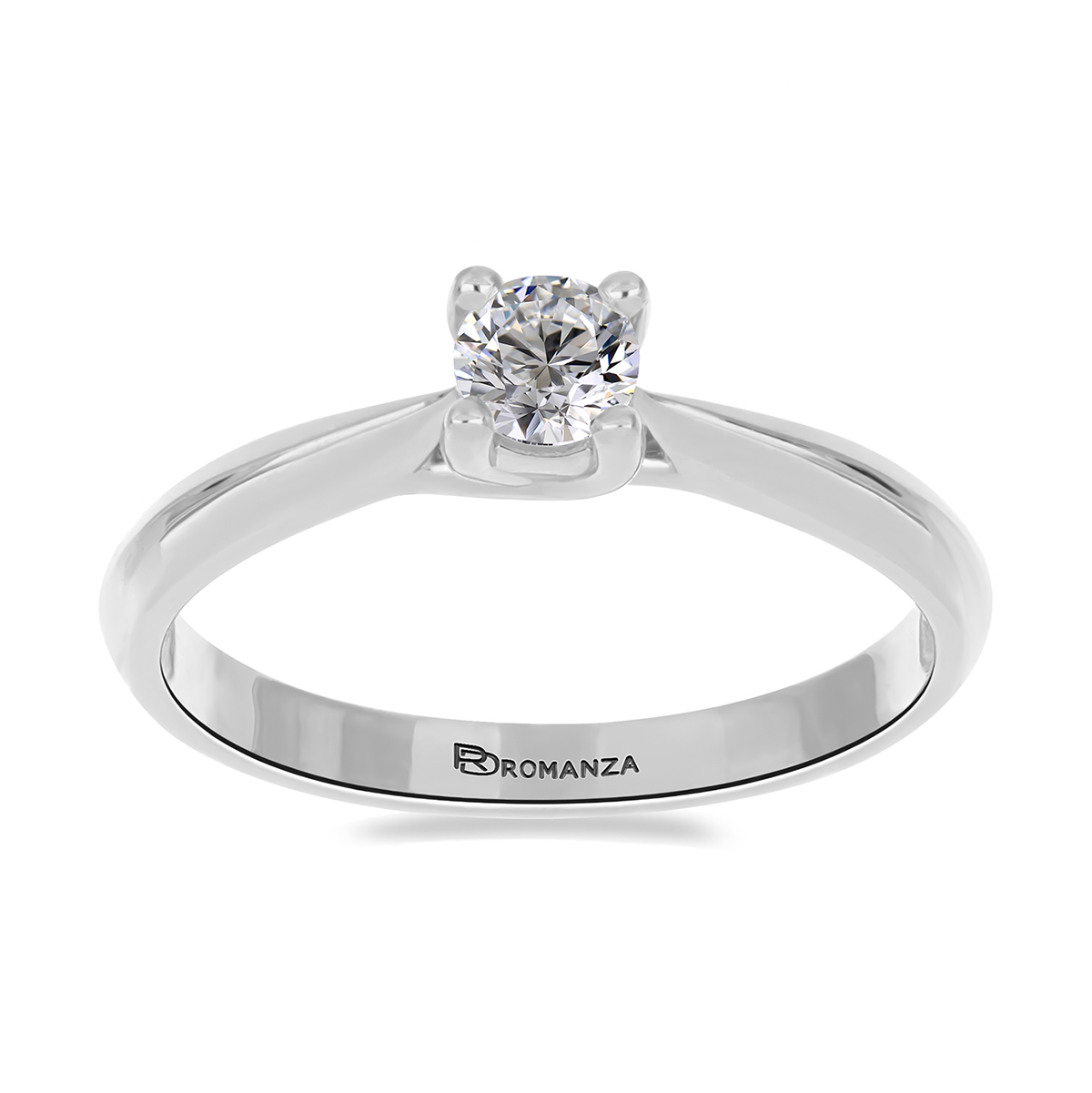 Anillo Solitario con Centro 0.17 Quilates de Diamante en Oro Blanco de 14 kt