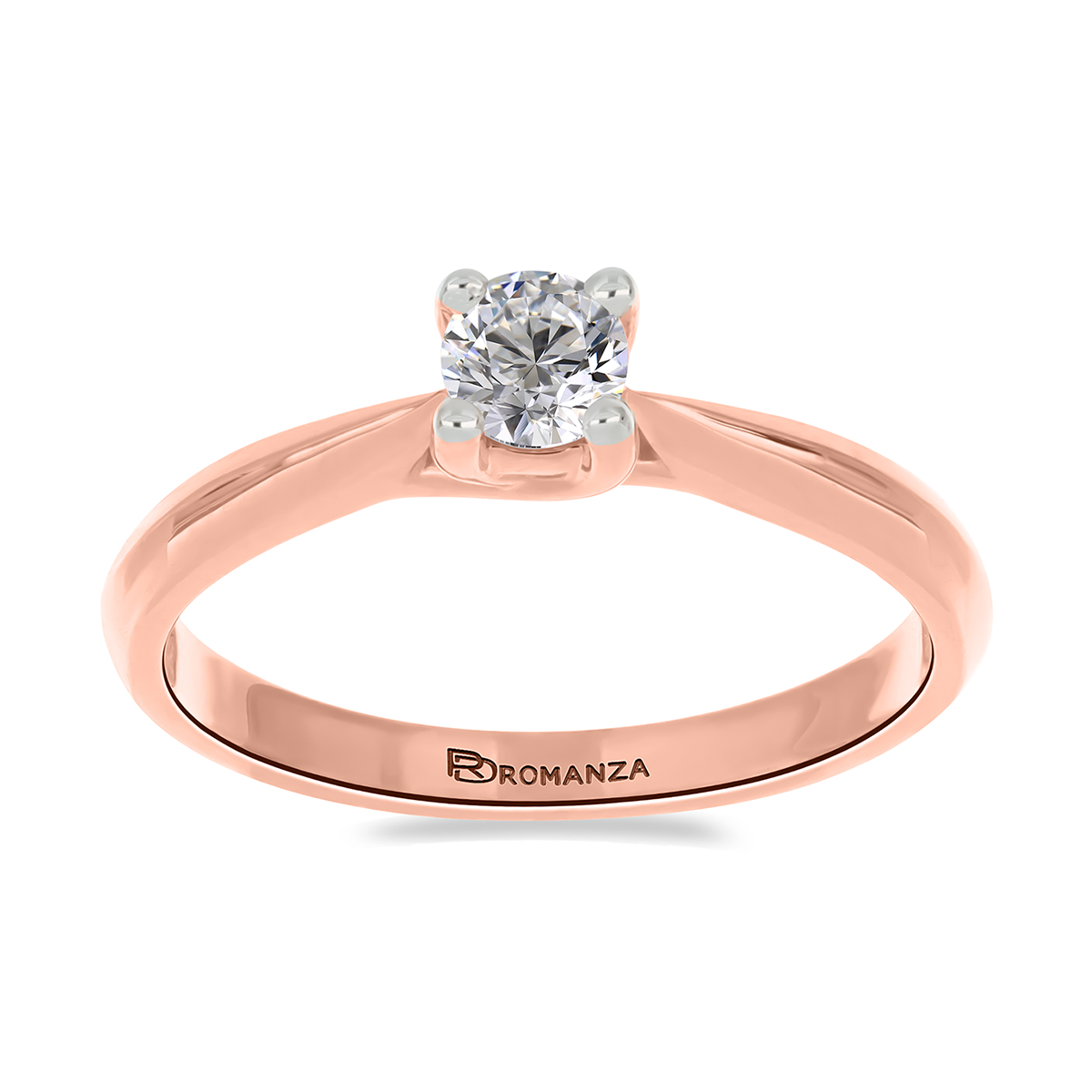 Anillo Solitario con Centro 0.25 Quilates de Diamante en Oro Rosa de 14 kt