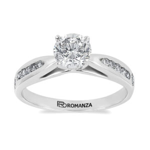 Anillo Solitario con Centro 0.85 Quilates y Montadura 0.22 Quilates de Diamante en Oro Blanco de 14 kt