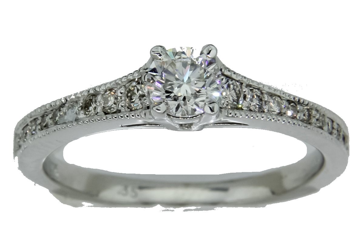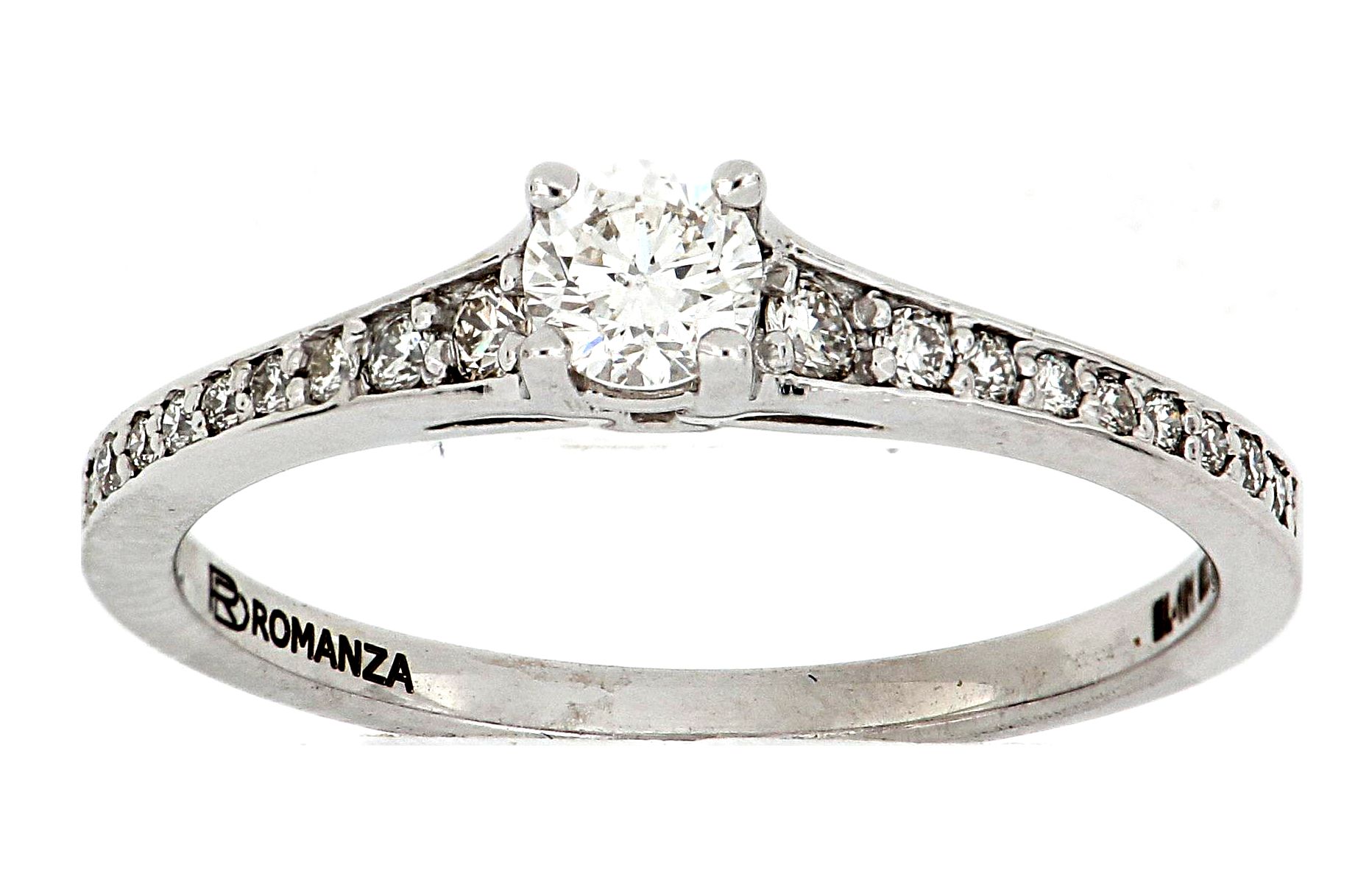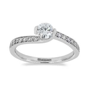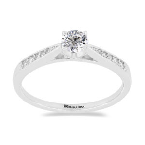 Anillo Solitario con Centro 0.35 Quilates y Montadura 0.08 Quilates de Diamante en Oro Blanco de 14 kt