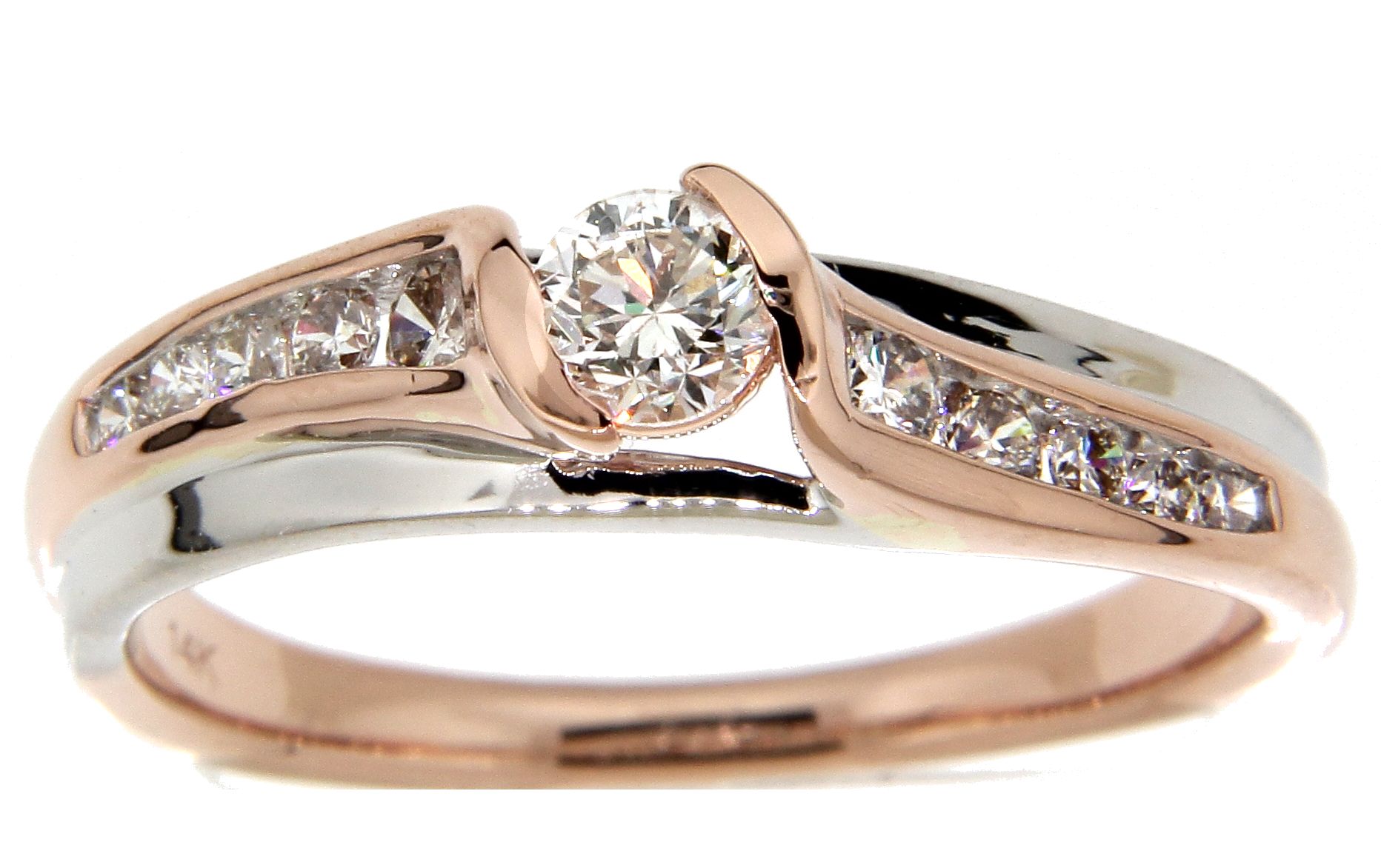 Anillo Solitario con Centro 0.25 Quilates y Montadura 0.26 Quilates de Diamante en Oro Combinado de 14 kt