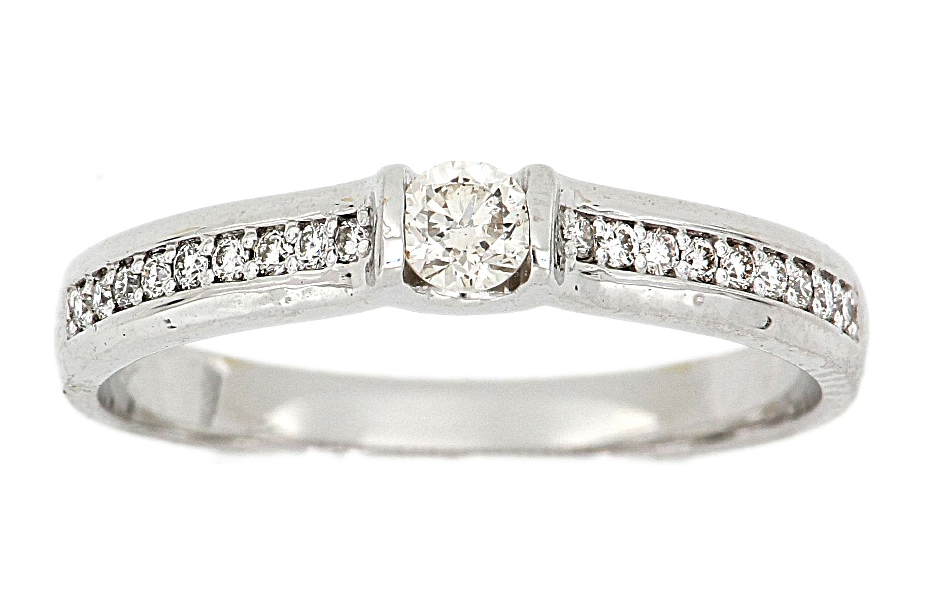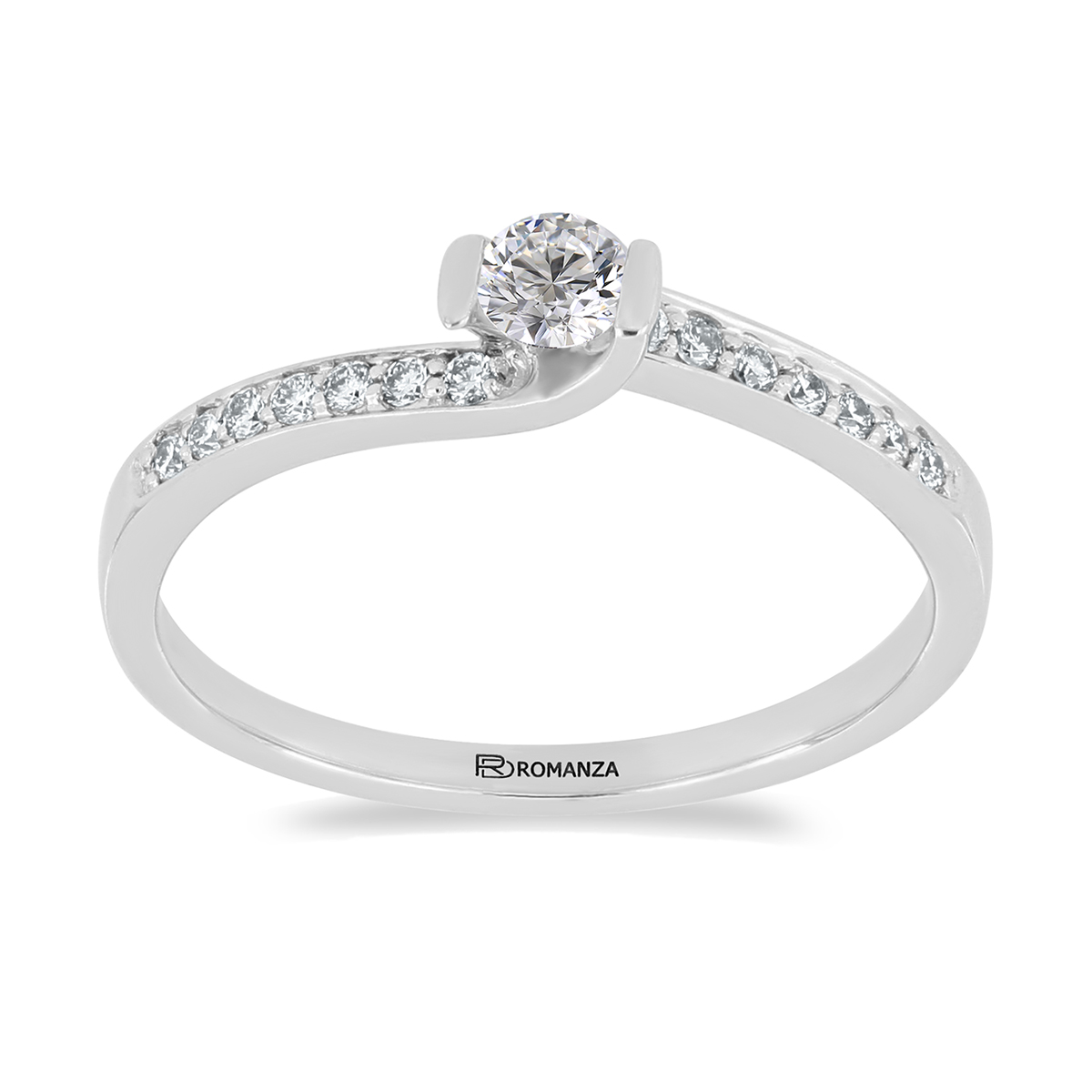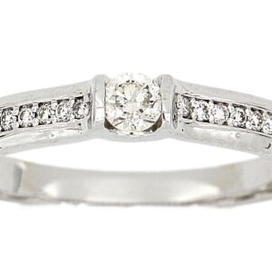 Anillo Solitario con Centro 0.17 Quilates y Montadura 0.12 Quilates de Diamante en Oro Blanco de 14 kt