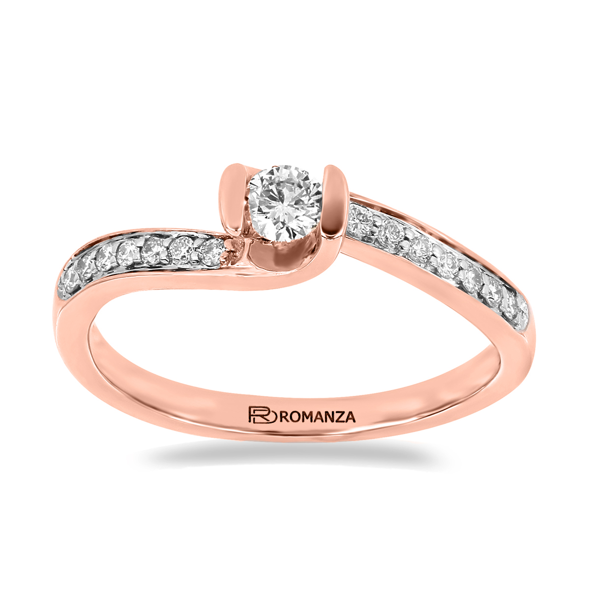 Anillo Solitario con Centro 0.20 Quilates y Montadura 0.08 Quilates de Diamante en Oro Rosa de 14 kt
