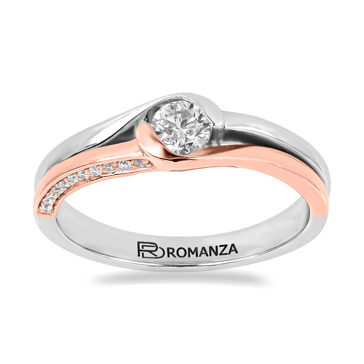 Anillo Solitario con Centro 0.25 Quilates y Montadura 0.10 Quilates de Diamante en Oro Combinado de 14 kt