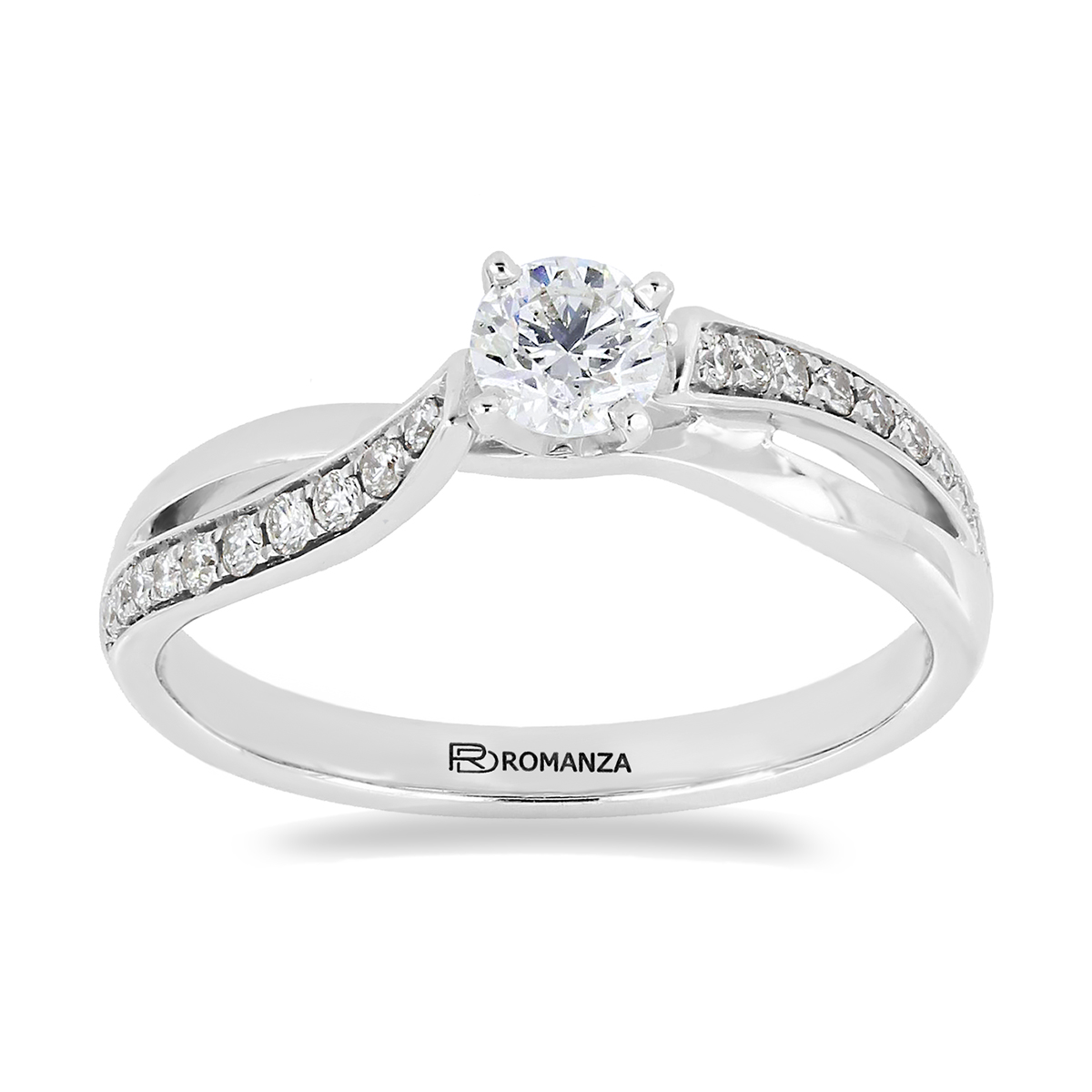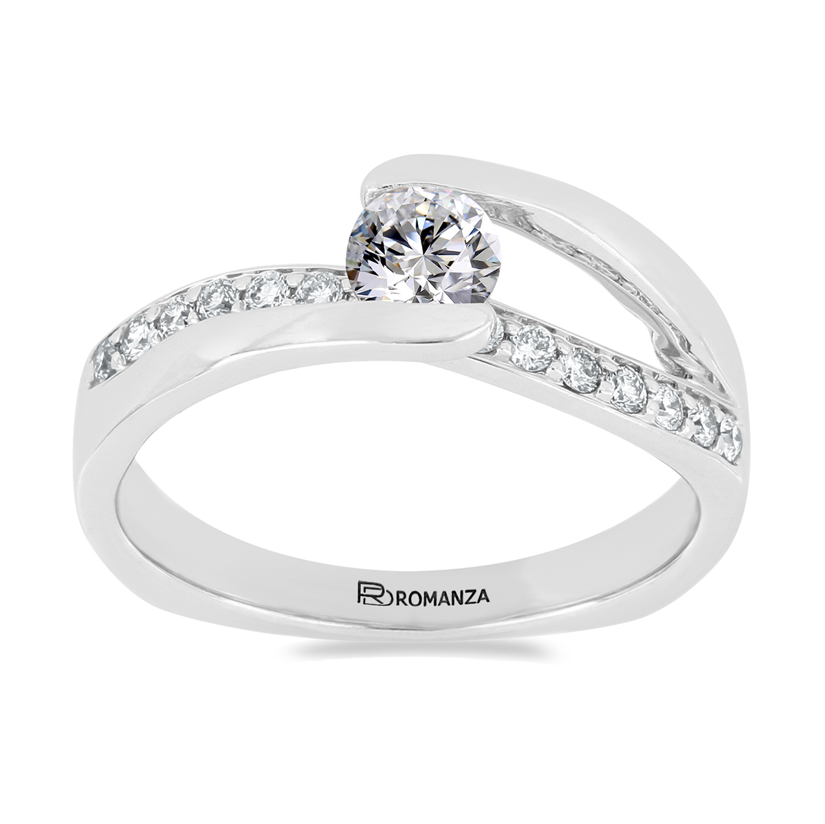 Anillo Solitario con Centro 0.35 Quilates y Montadura 0.20 Quilates de Diamante en Oro Blanco de 14 kt