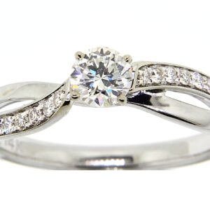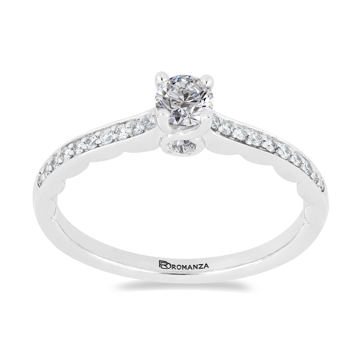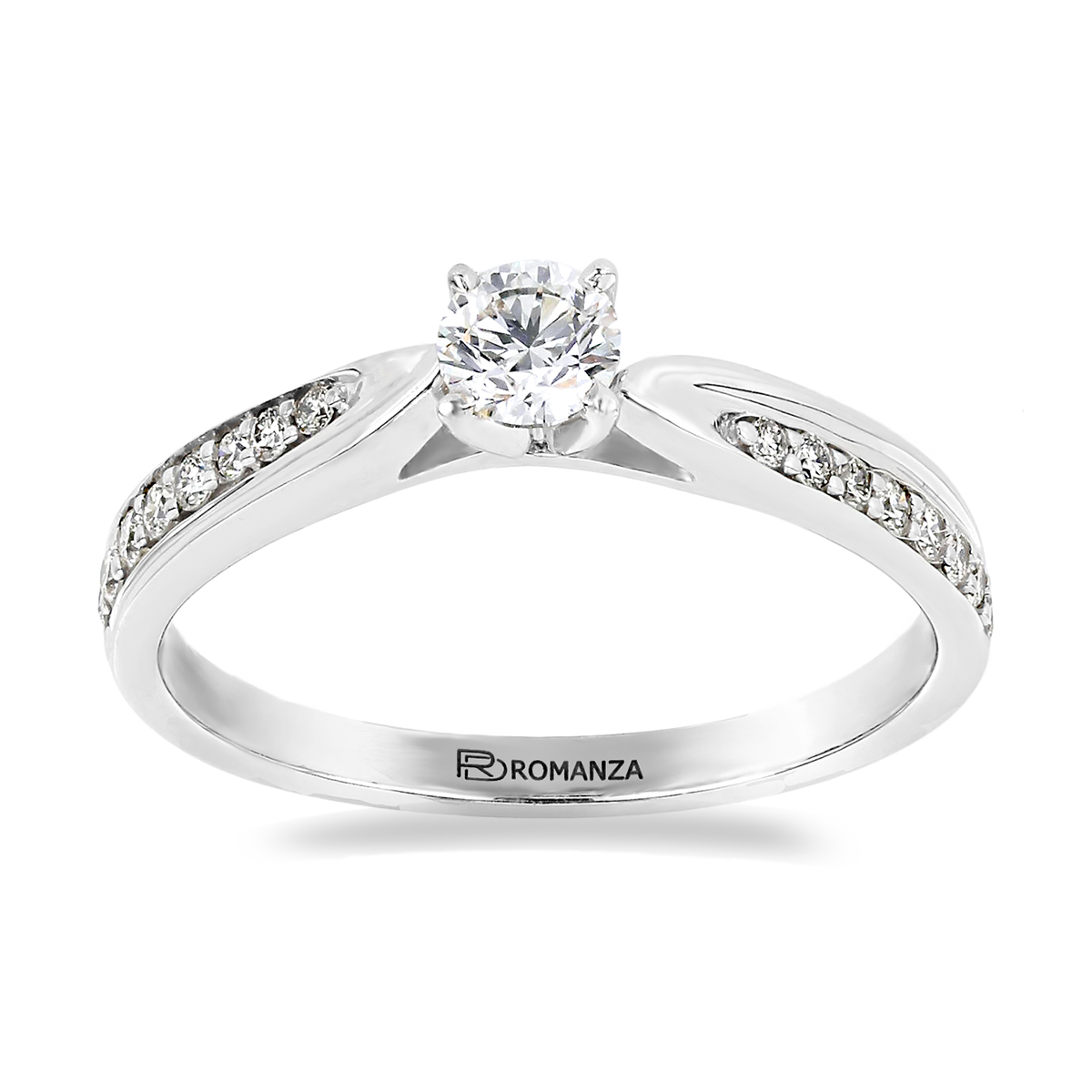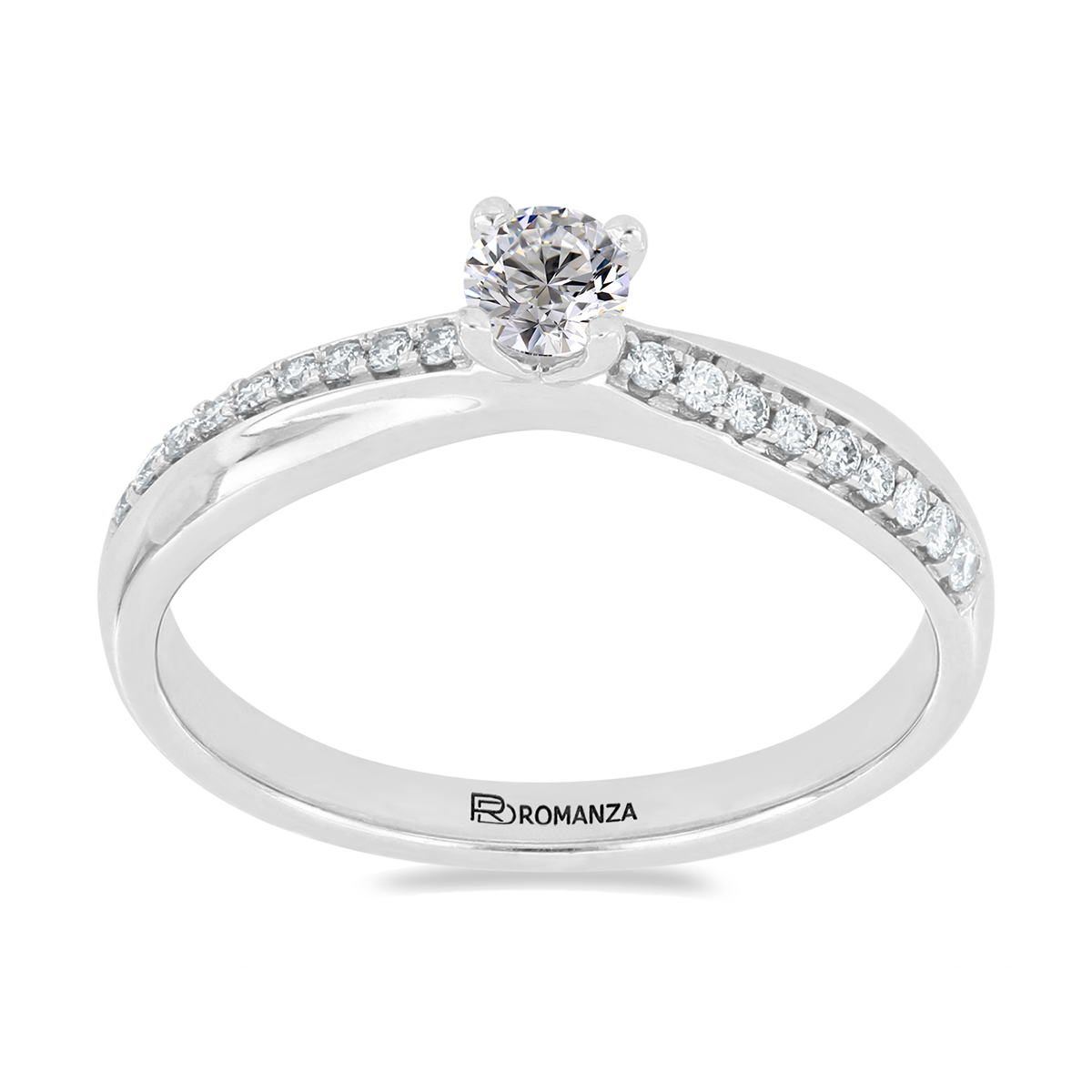 Anillo Solitario con Centro 0.20 Quilates y Montadura 0.12 Quilates de Diamante en Oro Blanco de 14 kt