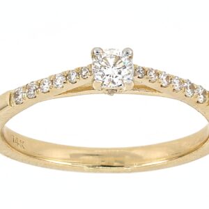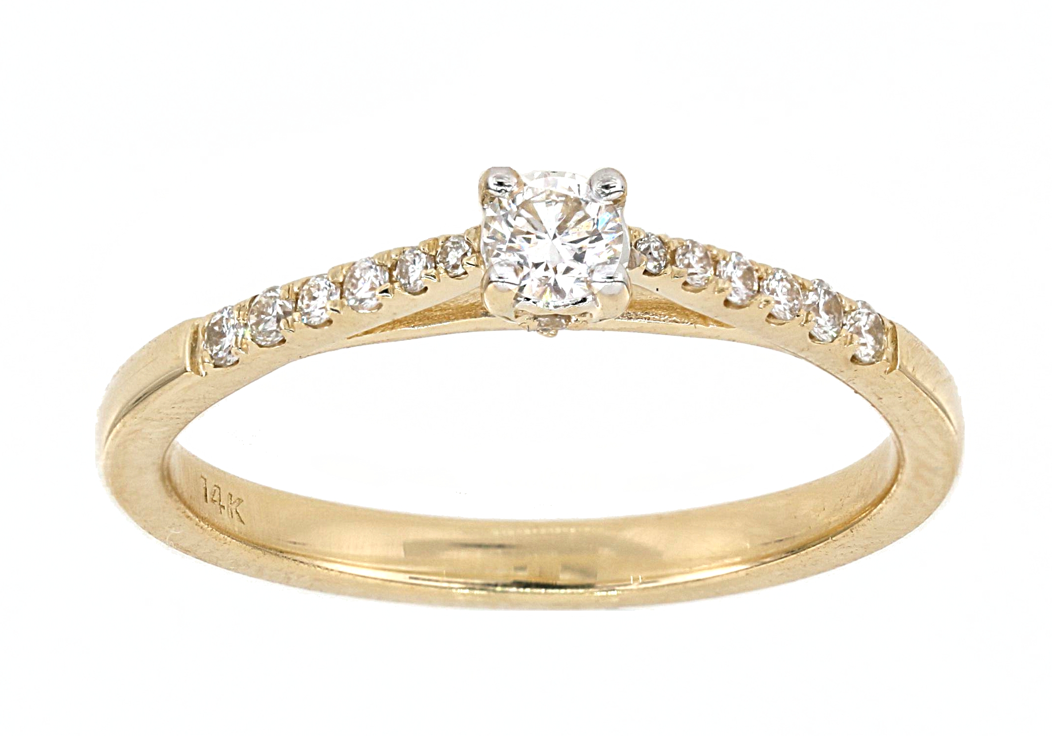 Anillo Solitario con Centro 0.15 Quilates y Montadura 0.12 Quilates de Diamante en Oro Amarillo de 14 kt