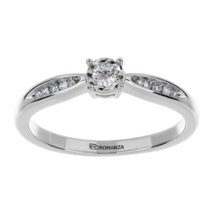 Anillo Solitario Ilusión con Montadura 0.07 Quilates de Diamante en Oro Blanco de 14 kt