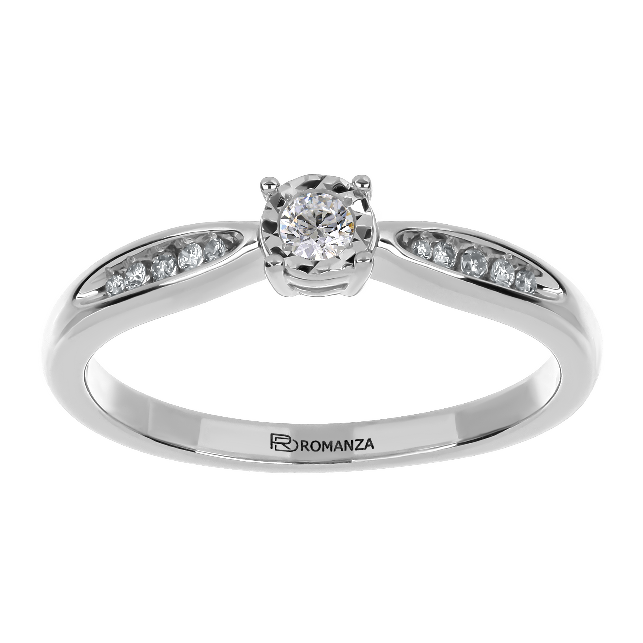 Anillo Solitario Ilusión con Montadura 0.14 Quilates de Diamante en Oro Blanco de 14 kt