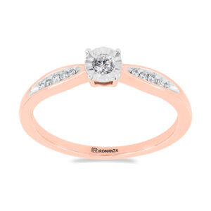 Anillo Solitario Ilusión con Montadura 0.14 Quilates de Diamante en Oro Rosa de 14 kt