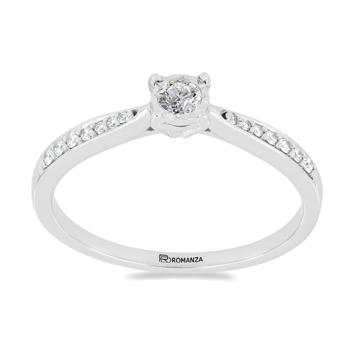 Anillo Solitario Ilusión con Montadura 0.15 Quilates de Diamante en Oro Blanco de 14 kt