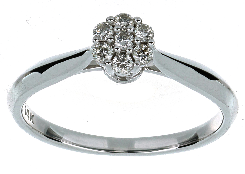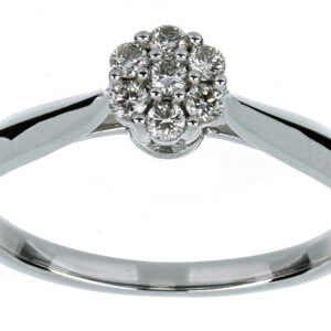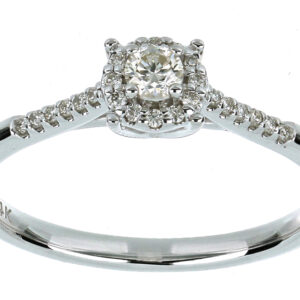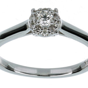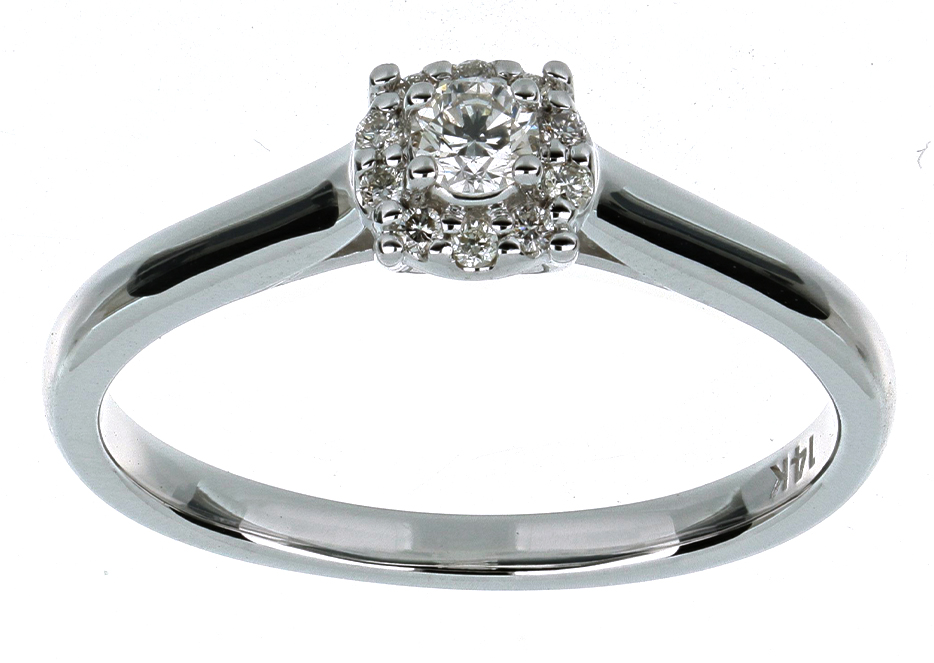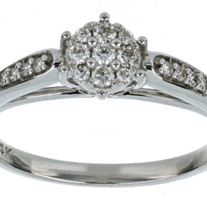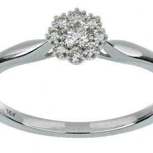 Anillo Solitario Roseta con Montadura 0.22 Quilates de Diamante en ORO BLANCO de 14 kt