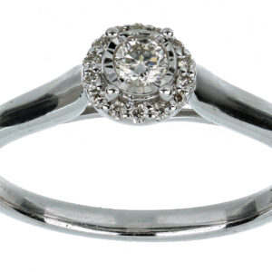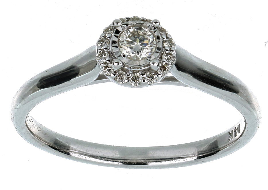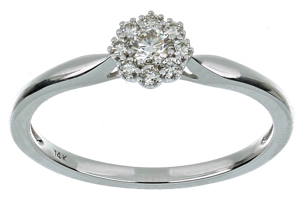 Anillo Solitario Roseta con Montadura 0.15 Quilates de Diamante en ORO BLANCO de 14 kt