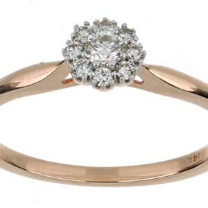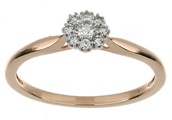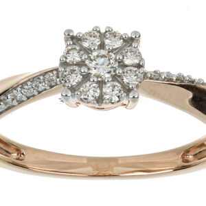 Anillo Solitario Roseta con Montadura 0.22 Quilates de Diamante en ORO ROSA de 14 kt