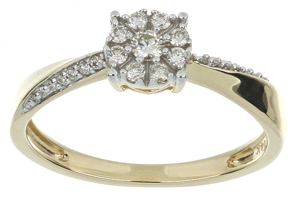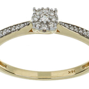Anillo Solitario Roseta con Montadura 0.22 Quilates de Diamante en ORO AMARILLO de 14 kt