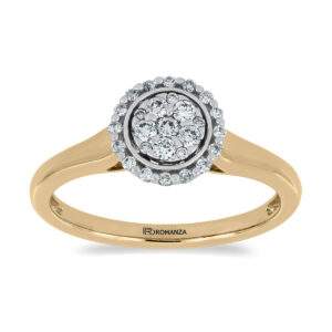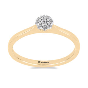 Anillo Solitario Roseta con Montadura 0.10 Quilates de Diamante en Oro Amarillo de 14 kt
