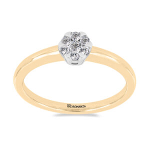 Anillo Solitario Roseta con Montadura 0.17 Quilates de Diamante en Oro Combinado de 14 kt