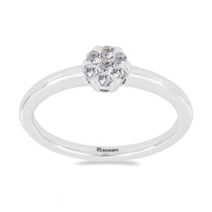 Anillo Solitario Roseta con Montadura 0.17 Quilates de Diamante en Oro Blanco de 14 kt