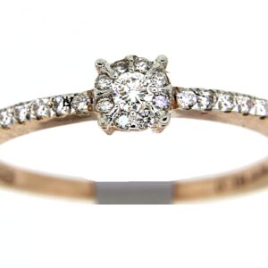 Anillo Solitario Roseta con Montadura 0.17 Quilates de Diamante en Oro Rosa de 14 kt