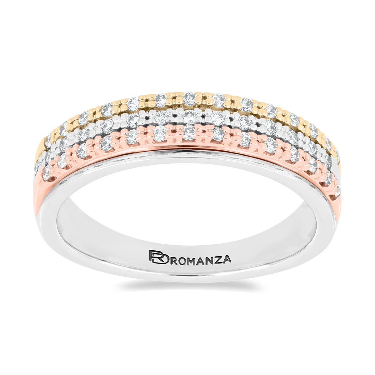 Anillo Solitario con Centro 0.10 Quilates de Diamante en Oro Combinado de 14 kt