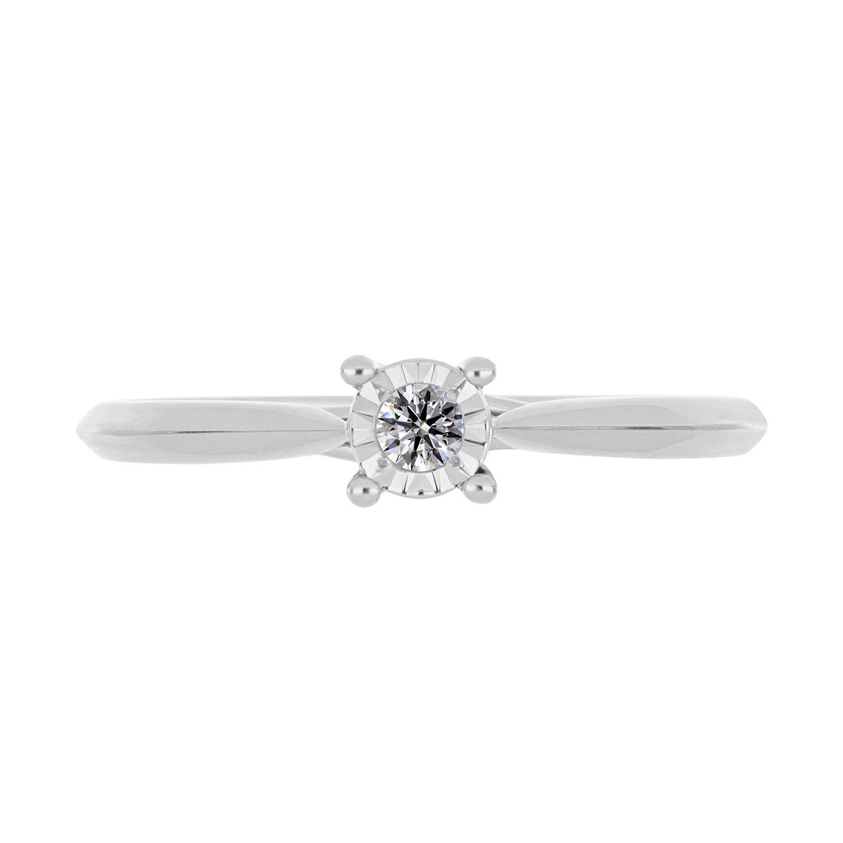 Anillo Solitario Ilusión con Centro 0.06 Quilates de Diamante en ORO BLANCO de 14 kt