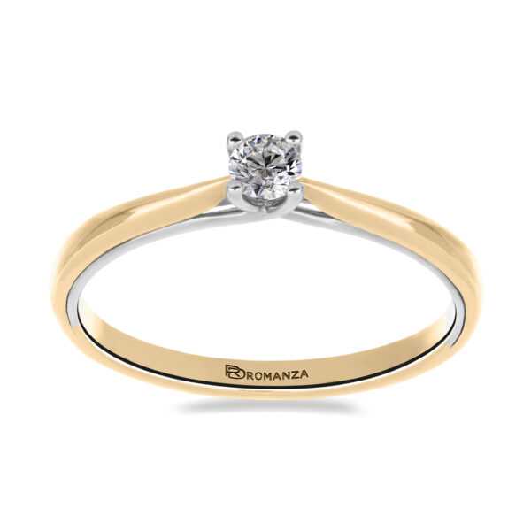 Anillo Solitario con Centro 0.15 Quilates de Diamante en ORO COMBINADO de 14 kt