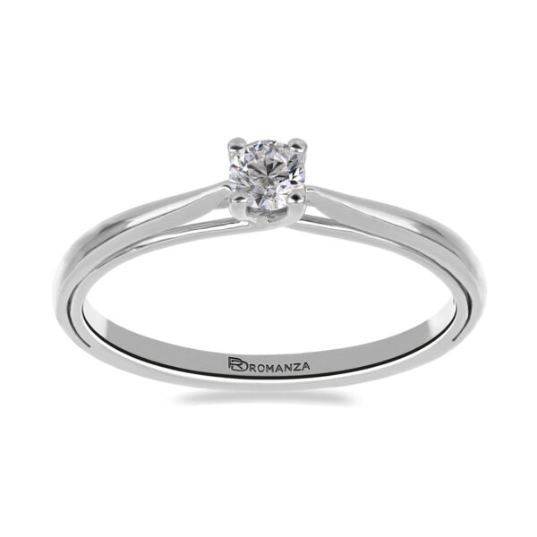 Anillo Solitario con Centro 0.15 Quilates de Diamante en ORO BLANCO de 14 kt