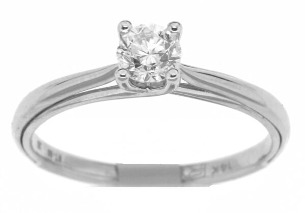 Anillo Solitario con Centro 0.15 Quilates de Diamante en ORO BLANCO de 14 kt