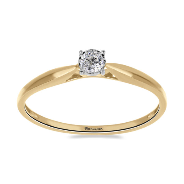 Anillo Solitario Ilusión con Centro 0.10 Quilates de Diamante en ORO AMARILLO de 14 kt