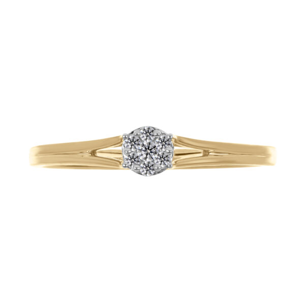 Anillo Solitario Roseta con Montadura 0.19 Quilates de Diamante en ORO AMARILLO de 14 kt