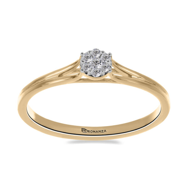 Anillo Solitario Roseta con Montadura 0.12 Quilates de Diamante en ORO AMARILLO de 14 kt