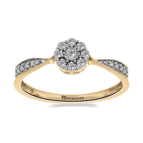 Anillo Solitario Roseta con Montadura 0.19 Quilates de Diamante en ORO AMARILLO de 14 kt