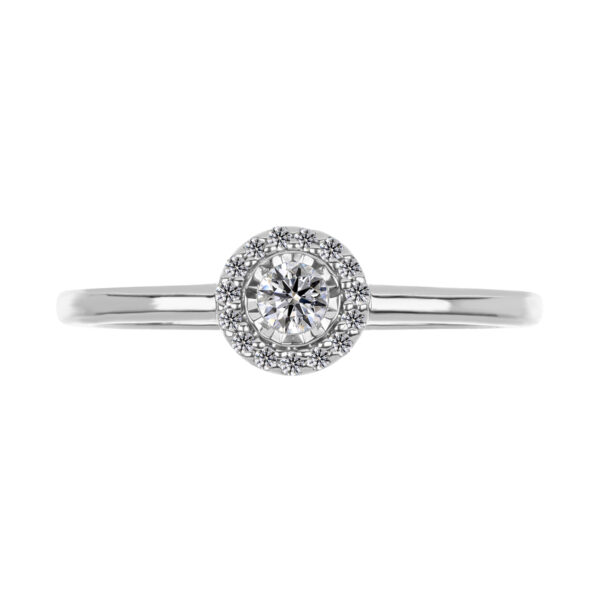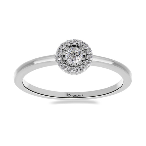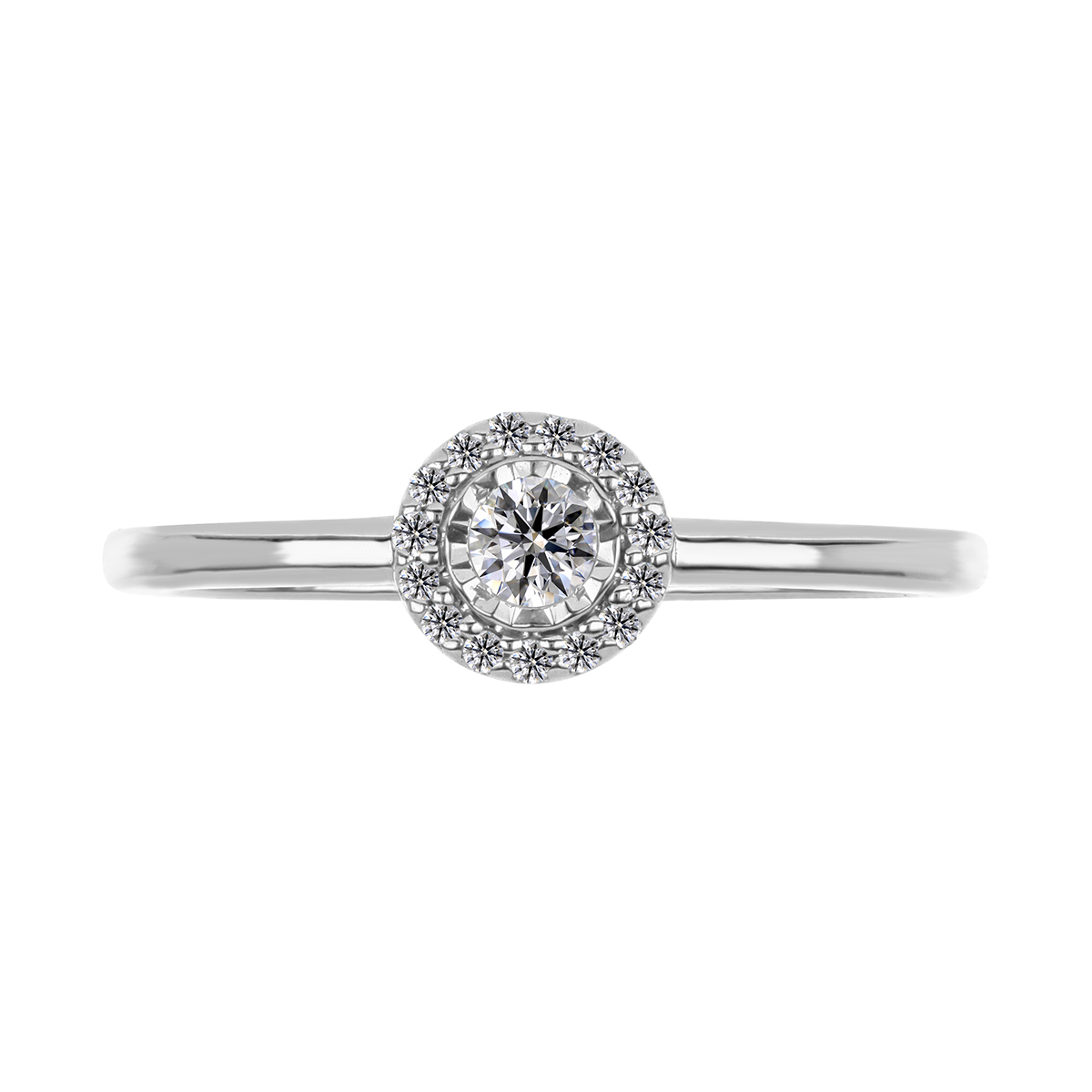Anillo Solitario Roseta con Montadura 0.16 Quilates de Diamante en ORO BLANCO de 14 kt