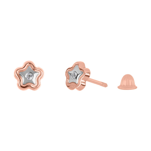 Aretes Bebé o Niña con Montadura 0.02 Quilates de Diamante en ORO ROSA de 14 kt