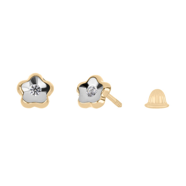 Aretes Bebé o Niña con Montadura 0.03 Quilates de Diamante en ORO COMBINADO de 14 kt