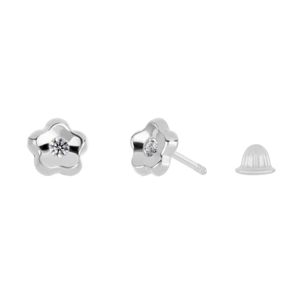 Aretes Bebé o Niña con Montadura 0.03 Quilates de Diamante en ORO BLANCO de 14 kt