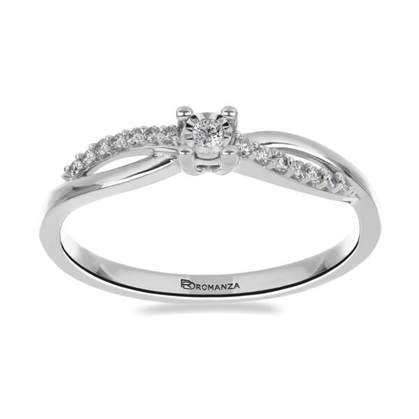 Anillo Solitario Ilusión con Montadura 0.12 Quilates de Diamante en ORO BLANCO de 14 kt