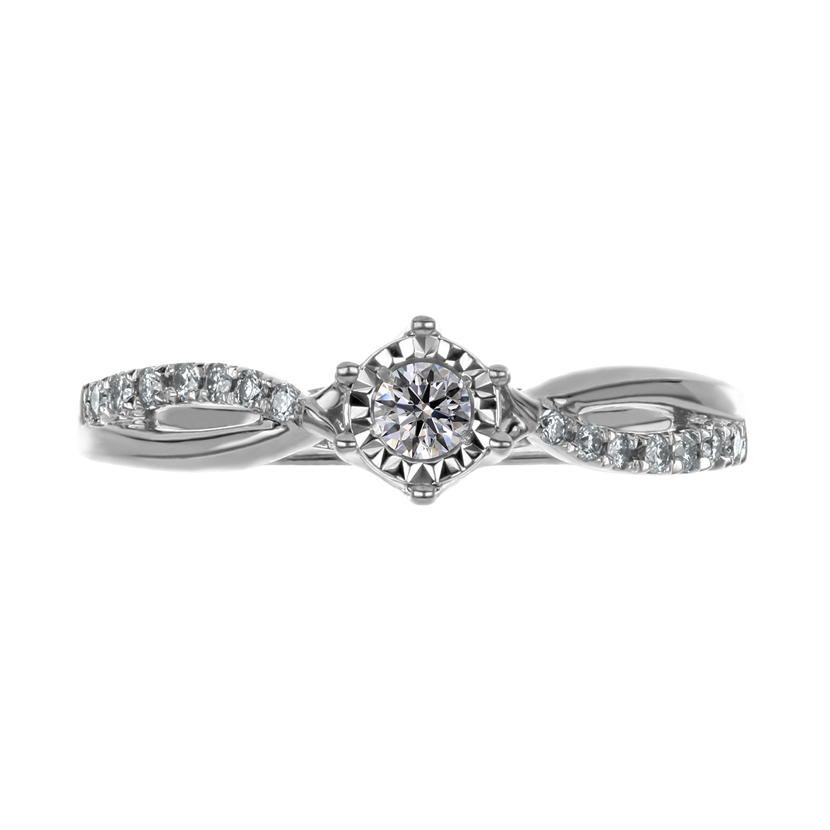 Anillo Solitario Ilusión con Centro 0.12 Quilates y Montadura 0.11 Quilates de Diamante en ORO BLANCO de 14 kt