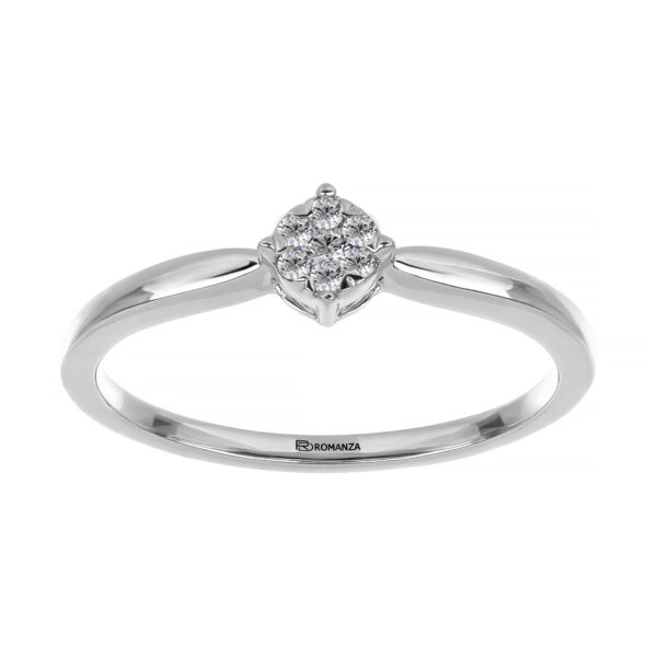 Anillo Solitario Roseta con Montadura 0.06 Quilates de Diamante en ORO BLANCO de 14 kt