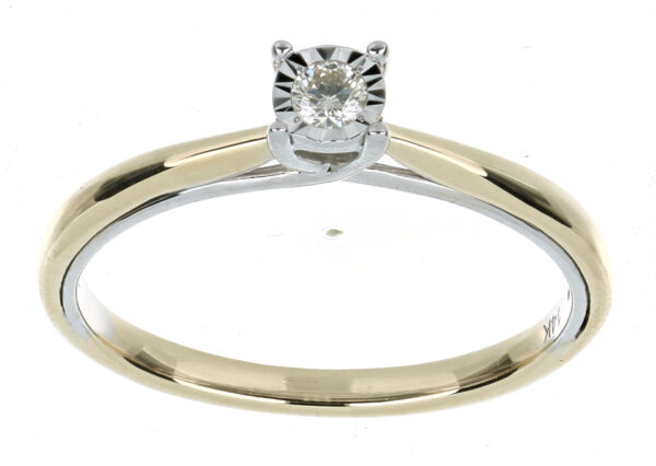 Anillo Solitario Ilusión con Centro 0.07 Quilates de Diamante en ORO COMBINADO de 14 kt