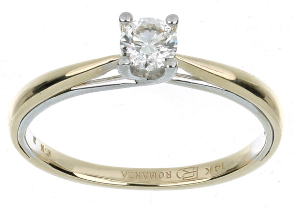 Anillo Solitario con Centro 0.30 Quilates de Diamante en ORO COMBINADO de 14 kt