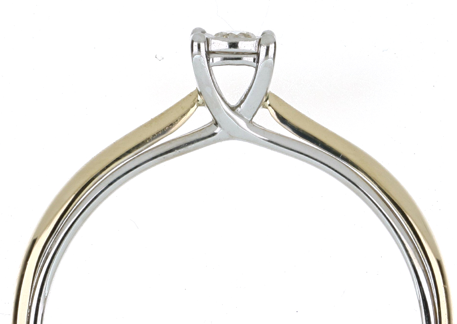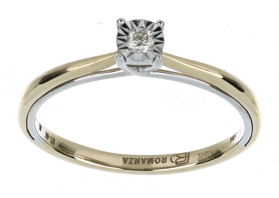 Anillo Solitario Ilusión con Centro 0.05 Quilates de Diamante en ORO COMBINADO de 14 kt