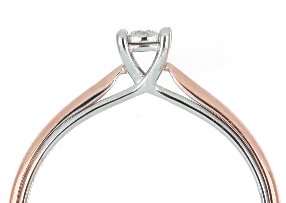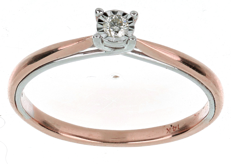 Anillo Solitario Ilusión con Centro 0.05 Quilates de Diamante en ORO COMBINADO de 14 kt