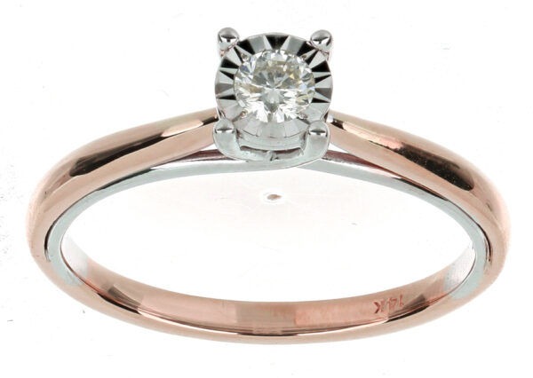 Anillo Solitario Ilusión con Centro 0.15 Quilates de Diamante en ORO COMBINADO de 14 kt