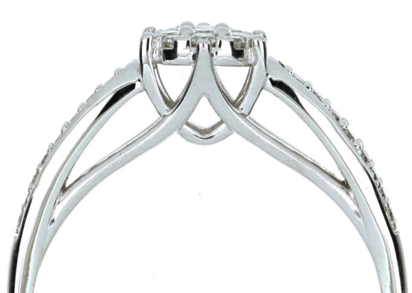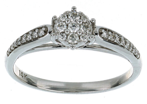 Anillo Solitario Roseta con Montadura 0.20 Quilates de Diamante en ORO BLANCO de 14 kt