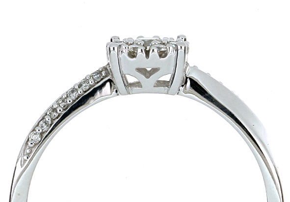Anillo Solitario Roseta con Montadura 0.19 Quilates de Diamante en ORO BLANCO de 14 kt