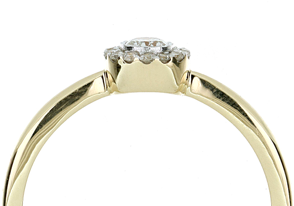 Anillo Solitario Roseta con Montadura 0.19 Quilates de Diamante en ORO AMARILLO de 14 kt