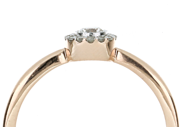 Anillo Solitario Roseta con Montadura 0.22 Quilates de Diamante en ORO ROSA de 14 kt